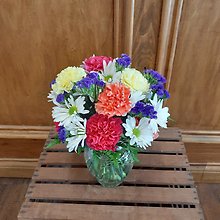 An absolutely beautiful arrangement, as nice or nicer than the picture, which is not always the case with other florists. It waa delivered on time, they even fixed a typo I made on the card, for which I am grateful. Excellent !!!